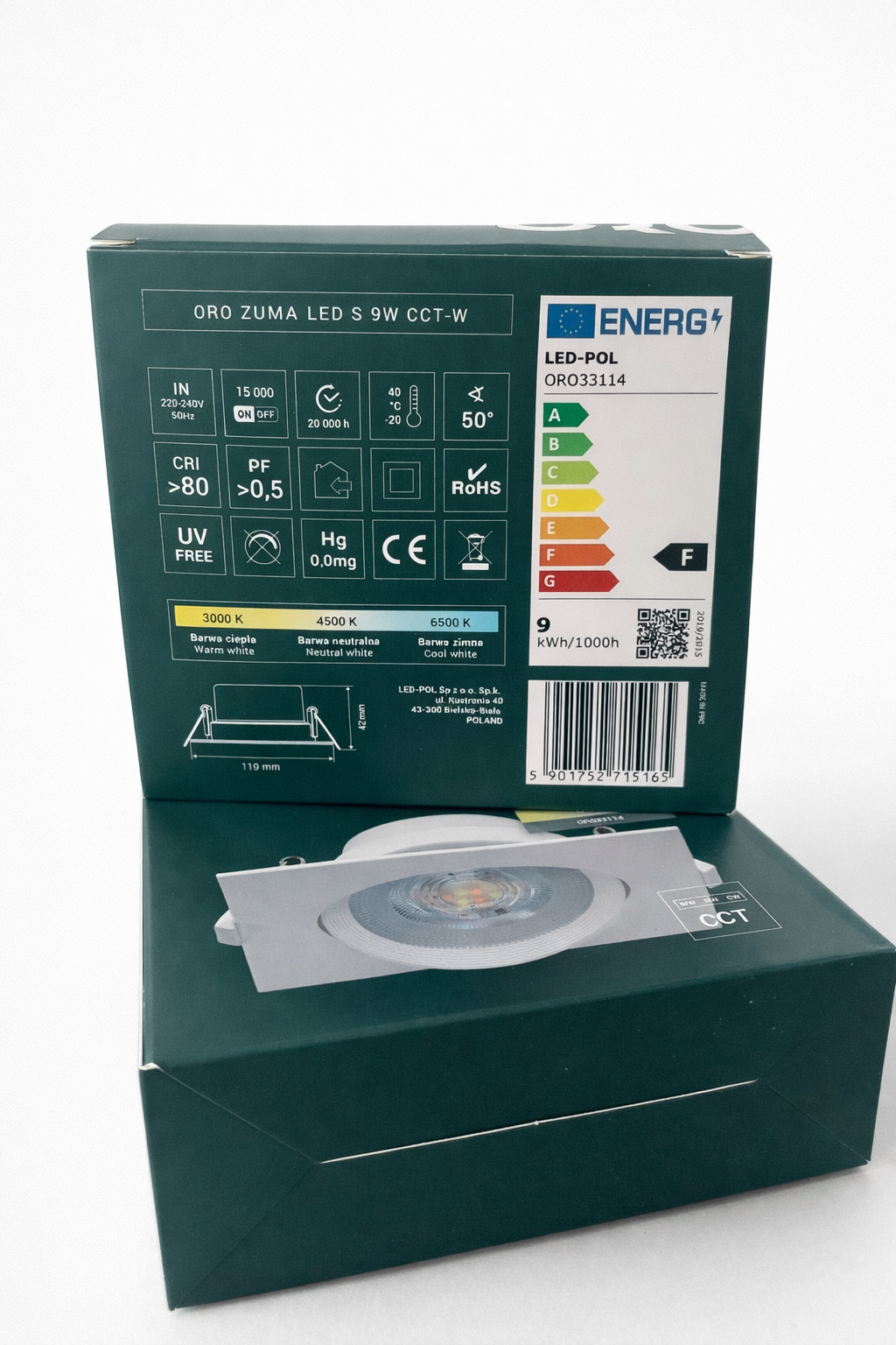 Spot LED ORO ZUMA 9W CCT Alb Patrat